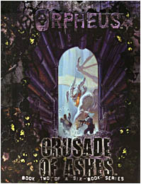Reviewed by Tuukka Hurmeranta Crusade of Ashes begins the story for which Orpheus set the stage. Advertised as "the first plot-driven role-playing experience," this is what Orpheus is all about. And in the very first supplement, the players are going to find that someone swept the rug off from underneath their feet. That someone is, of course, your friendly neighborhood Storyteller, acting on the fiendish advice printed herein. If you don't count yourself in their ranks, and foresee a chance of playing Orpheus one day, you are given the Spoiler Alert. Previewing the book without mentioning the sweeping changes it focuses on would be a greater exercise in walking on eggshells than yours truly can manage, so proceed at your own discretion. Now, a word of advice to those who hate "metaplots" with a passion or decide to run their own kind of game: go buy Crusade of Ashes anyway. The book is littered in each section and topic with alternative approaches and outcomes, enabling you to take the game anywhere you want with the writers' full support. More than that, the book outlines rules and concepts the main book is - in retrospect - severely lacking in. Whether you use or ignore the over-arching plot, Crusade of Ashes fulfills the world of Orpheus on countless different fronts from what the Laments really mean to what the garden-variety, one-man projection industries could look like. The book has something for everyone. Crusade of Ashes is a taste of things to come in many ways. It's not surprising that the format of CoA is adopted with each of the latter sourcebooks, down to similar chapter layout and what's presented in each.