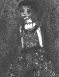 Name: Janice Porrohman (aka Janet Pilcher) Mortal Name: Janice Porrohman (aka Janet Pilcher) Court: Seelie Legacies: Crafter / Wretch Seeming: Wilder Kith: Sluagh Motley: Bone Dance Physical: Strength 2, Dexterity 3, Stamina 3 Social: Charisma 3, Manipulation 3, Appearance 2 Mental: Perception 4 (Empathic), Intelligence 3, Wits 3 Talents: Alertness 2, Empathy 3, Kenning 2, Persuasion 3 Skills: Crafts 1, Disguise 2, Etiquette 3, Leadership 2, Performance: Oboe 2, Performance: Singing 3, Security 1, Stealth 2, Survival 1 Knowledges: Computer 1, Lore: Wraith 1, Lore: Changeling 1, Science 2 Backgrounds: Chimerical Companion 1, Contacts 2, Fame 1, Mentor (Peter) 2, Remembrance 1, Resources 1 Arts: Chicanery 4, Legerdemain 2 Realms: Actor 3, Fae 1, Scene 1, Time 1 Glamour: 5 Willpower: 4 Banality: 3 Musing Threshold: Encouraging others to soar to heights she herself cannot. Merits: True Love (+1), Enchanting Whisper (+1)* Flaws: Flashbacks (-3) Mortal Seeming: Janice still looks much as she did in high school, back when she was plain old Janet, only the braces that covered her teeth are now gone and she has quite obviously become a young woman. Shes dyed her long hair jet black and resorted to ice-blue contacts, pale makeup and lots of black mascara and lipstick to disguise herself. She also dresses like a Victorian lady in mourning: long, black bombazine dress, veiled hat and all. Fae Mien: As a Sluagh, Janice's eyes are black and sunken, her skin is a strange shade that veers between off-white and pale grey-green, and her hair really is black. She's skinny and shrunken, with delicate, black lips and iron-grey, ragged fingernails. Her clothing appears older than it does to mortals, and is covered in cobwebs and crawling with black, Chimerical deaths-head moths. Role Playing: "I was standing on the landing / Now I'm standing in the hall / looking uuuuuup / up-up-up-up" (whispered) Janet is highly secretive. People know her name and what it is that she does, and that's all they need to know. If people found out who she was it would complicate things. So, for now at least, she is what she does, and that's all that really matters to anyone outside of the group - even other Sluagh. (Except Peter, of course) She doesn't like to think about what happened to her. Other Sluagh are alright, but when she sees Changelings of other Kiths she's really edgy with them - especially Sidhe. Too much interaction with the Dreaming's wilder aspects brings on bad sensememories of what the Unseelie Motley did to her (the Flashbacks Flaw) At such times she doesn't want to be near anyone but Larry. She loves Larry with all of her heart, and does her best to keep "Johnny" under control. She also loves Peter, though only as a mentor and friend: she knows how he feels about her but isn't sure how to put him off, yet. Stuart rubs her the wrong way for some reason, but she tries to be nice to him because she knows he's just like she was, so long ago. Maybe a little too much... Big Secrets: Janice knows what Larry actually is - a wraith - because he's told her what he is. She knows why he sometimes flies off the handle because of what Peter's told her about ghosts in general. And she also knows that Larry's a Risen, because other wraiths have told her that's what he's called, and she's gotten a few, dark hints of what that means from what they try not to say about it. (She hasn't told Peter about any of that for fear of what her mentor might do)